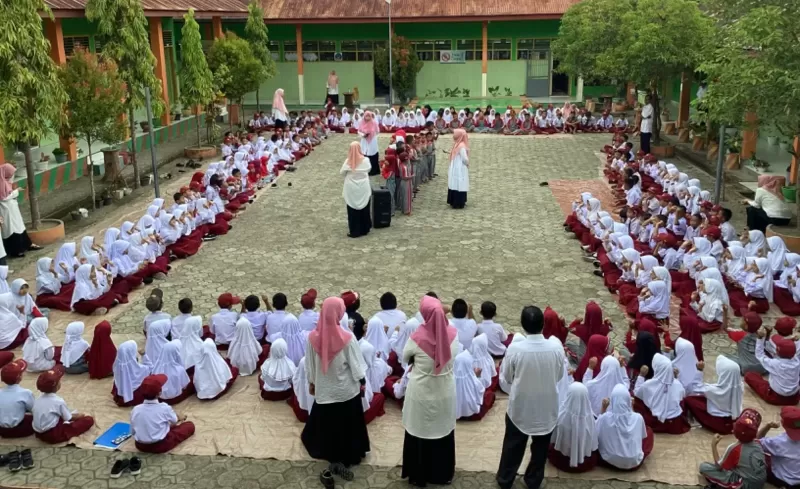 Sitti Nurhayati, salah satu pendidik yang bertugas mengarahkan agar mengikuti pembiasaan dengan tertib dilanjutkan dengan memandu para peserta didik melantunkan shalawat kepada Nabi.