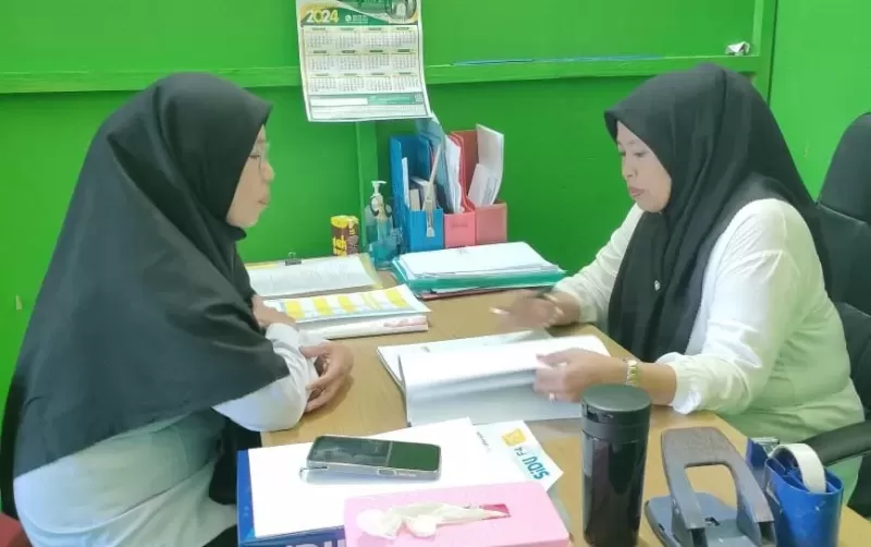 Lappa, Sinjai Utara (MIN 2) - Hari pertama, Kepala Madrasah Ibtidaiyah Negeri (MIN) 2 Sinjai, Asti Yuliarni lakukan supervisi administrasi terhadap para Tenaga Pendidik (Tendik). Berdasarkan jadwal yang telah diinformasikan, pada hari ini guru kelas 1 (Satu) mendapat giliran pertama, yakni Hasniati, Sitti Nurhayati dan Roswati. Senin, (09/09/2024)