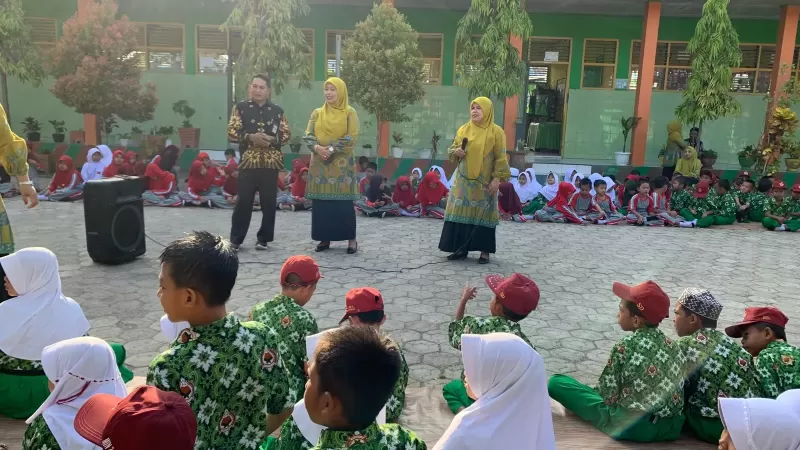 Suriati selaku pendidik yang bertugas (piket), menerangkan bahwa kelas 5 (lima) mendapat giliran untuk tampil menghafalkan bacaan shalat dengan tertib, kemudian diikuti oleh peserta didik lainnya.