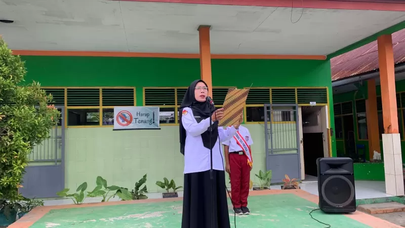 Pembina upacara, Roswati menyampaikan amanah terkait empat kata ajaib yang harus dibiasakan oleh peserta didik saat berada di lingkungan Madrasah, masyarakat dan rumah.