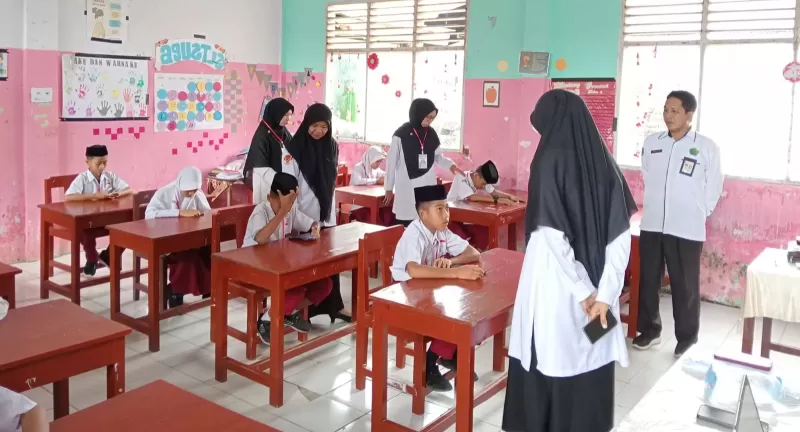 Kunjungan ini disambut hangat oleh Kepala Madrasah Megawati yang turut mendampingi proses pemantauan di ruang ujian.