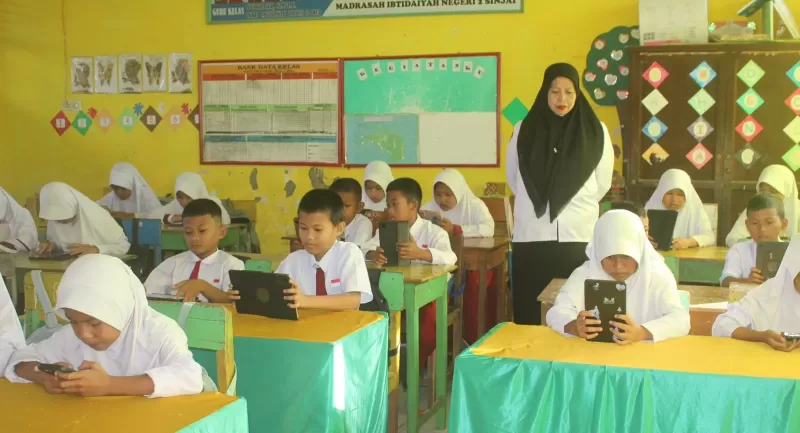Terkhusus di kelas digital, yaitu kelas 4A, 5A dan 5B, Asti Yuliarni memastikan kelancaran baik perangkat dan internet memadai agar tidak terjadi kendala selama proses PAT berlangsung. (Nihan)