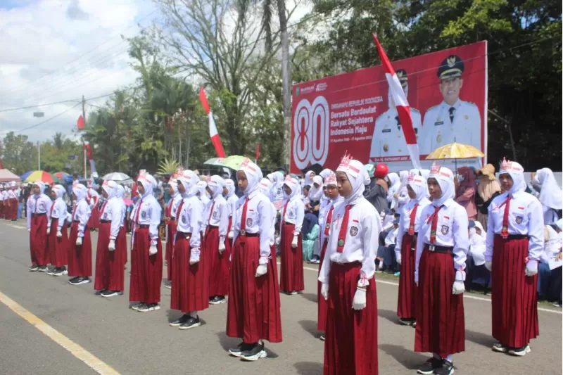 Sepanjang rute, para peserta menampilkan berbagai formasi dan gerakan kreatif yang menunjukkan kekompakan dan semangat nasionalisme yang kuat.