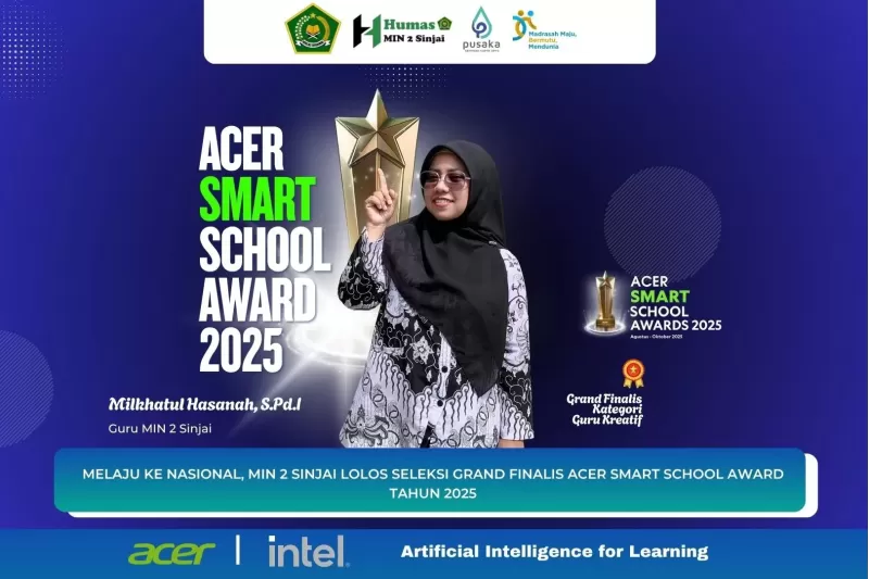 Sinjai (Kemenag Sinjai) - Salah seorang Pendidik berprestasi dari MIN 2 Sinjai, Milkhatul Hasanah, berhasil mengharumkan nama Madrasah dan Kabupaten Sinjai Provinsi Sulawesi Selatan setelah terpilih sebagai Finalis Acer Smart School Awards 2025 pada kategori Guru atau Dosen Kreatif jenjang SD/MI. Prestasi ini diumumkan melalui daftar resmi finalis yang dirilis oleh penyelenggara kompetisi tersebut. Dalam kategori ini, Milkhatul Hasanah menjadi salah satu dari lima pendidik kreatif yang mewakili berbagai sekolah dasar dan madrasah di Indonesia, bersama finalis lainnya dari Jawa Timur, Jawa Barat, Jawa Tengah, dan Kalimantan Timur.